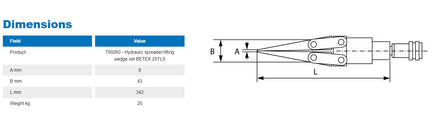 Hydraulic spreader/lifter with angled instead of stepped wedge face used for lifting equipment or spreading flanges. Includes BETEX AHP 701 hydraulic 2-stage pump, 1.5 meter hose, pressure gauge, quick coupler and steel storage case. All the components you will need to operate the wedge.