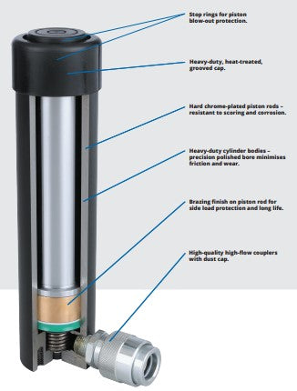 BETEX NSSS cylinders are standard industrial spring return single action hydraulic cylinders.